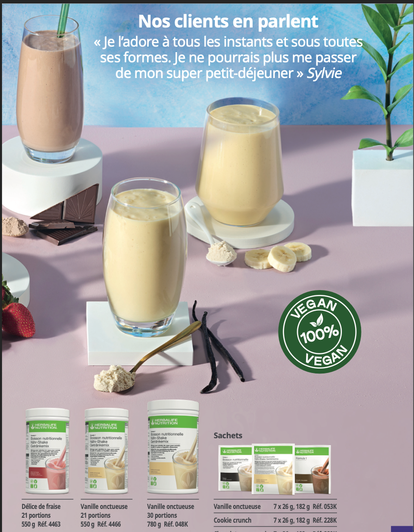 • Le Shake de Formula 1 Herbalife est très simple à préparer. Il constitue une alternative très pratique aux petits déjeuners, déjeuners ou dîners riches en calories.